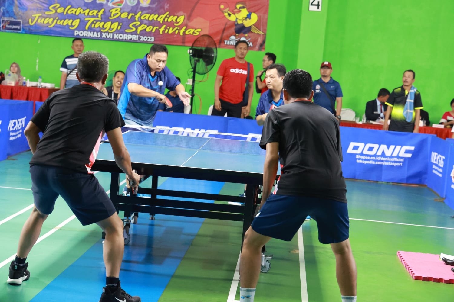 “Hari Senin besok kita akan mulai untuk perorangan,” ucap manager Cabor Tenis Meja E Deni Hermawan, Plt Kepala Bapenda Provinsi Banten. (BiroAdpim Banten/Yudhi)