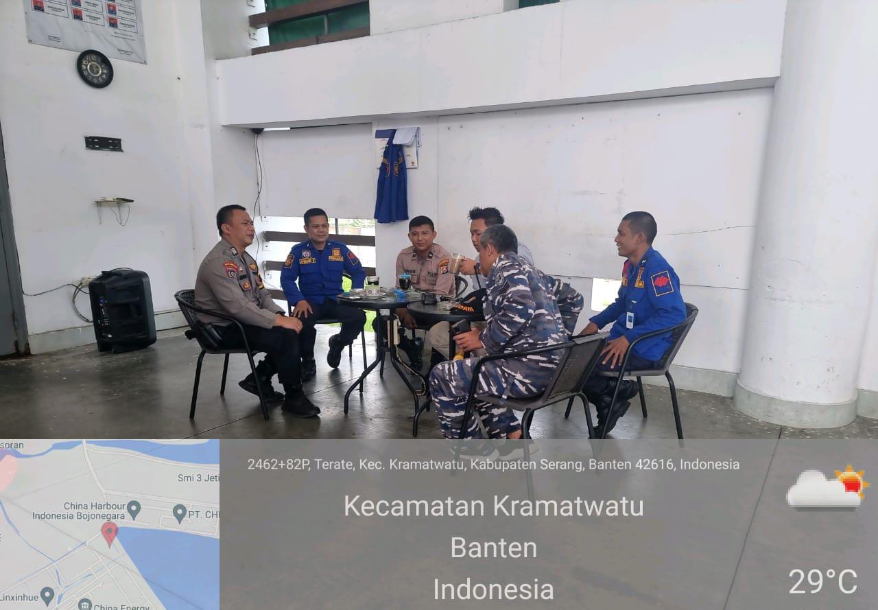 Polresta Serkot | Bhabinkamtibmas Polsek Kramatwatu Polresta Serkot Bripka Angga Risnandar melaksanakan kegiatan sambang dan dialogis serta jalin sinergitas dengan anggota Satpam PT. SGPJB PLTU Jawa 7 Desa Terate Kecamatan Kramatwatu Kabupaten Serang. Hal itu dilakukan guna menjaga tali silaturahmi serta menyampaikan himbauan-himbauan Kamtibmas kepada anggota satpam, Selasa, (4/7/2023).