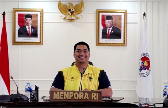 Di tengah kesibukannya Dito Ariotedjo masih memberikan waktu untuk memberikan sambutan secara virtual dari Kemenpora, Jakarta.