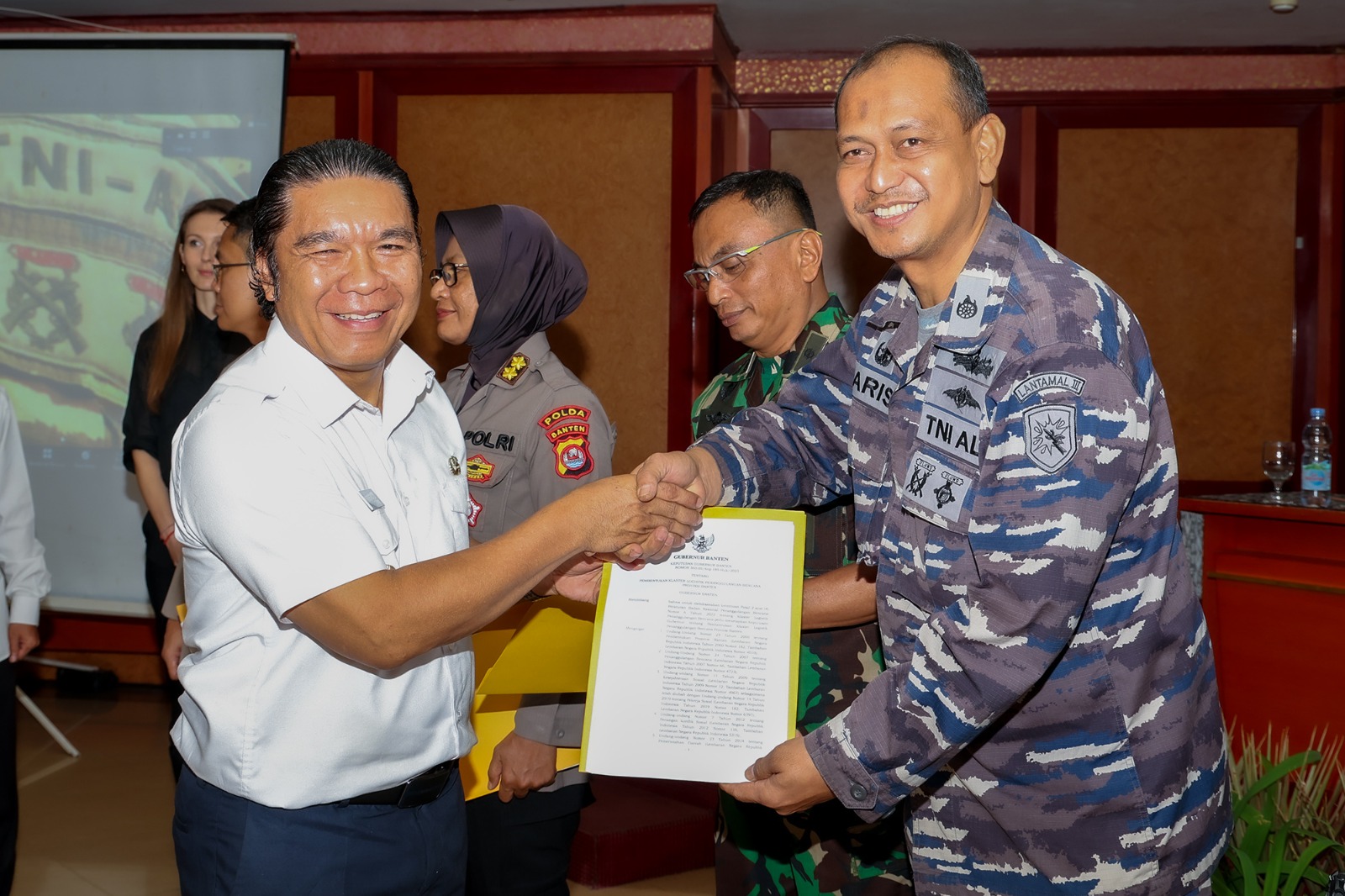 SERANG, (suarasiber.co.id) – Penjabat (Pj) Gubernur Banten Al Muktabar mengukuhkan keanggotaan Klaster Logistik Penanggulangan Bencana Provinsi Banten. Anggota klaster ini terdiri dari berbagai pihak, lintas lembaga, badan, dunia usaha, komunitas serta unsur masyarakat lainnya. Pengukuhan berdasarkan Surat Keputusan (SK) Gubernur Banten Nomor 360.05/Kep.189-Huk/2023 tentang Pembentukan Klaster Logistik Penanggulangan Bencana Provinsi Banten.