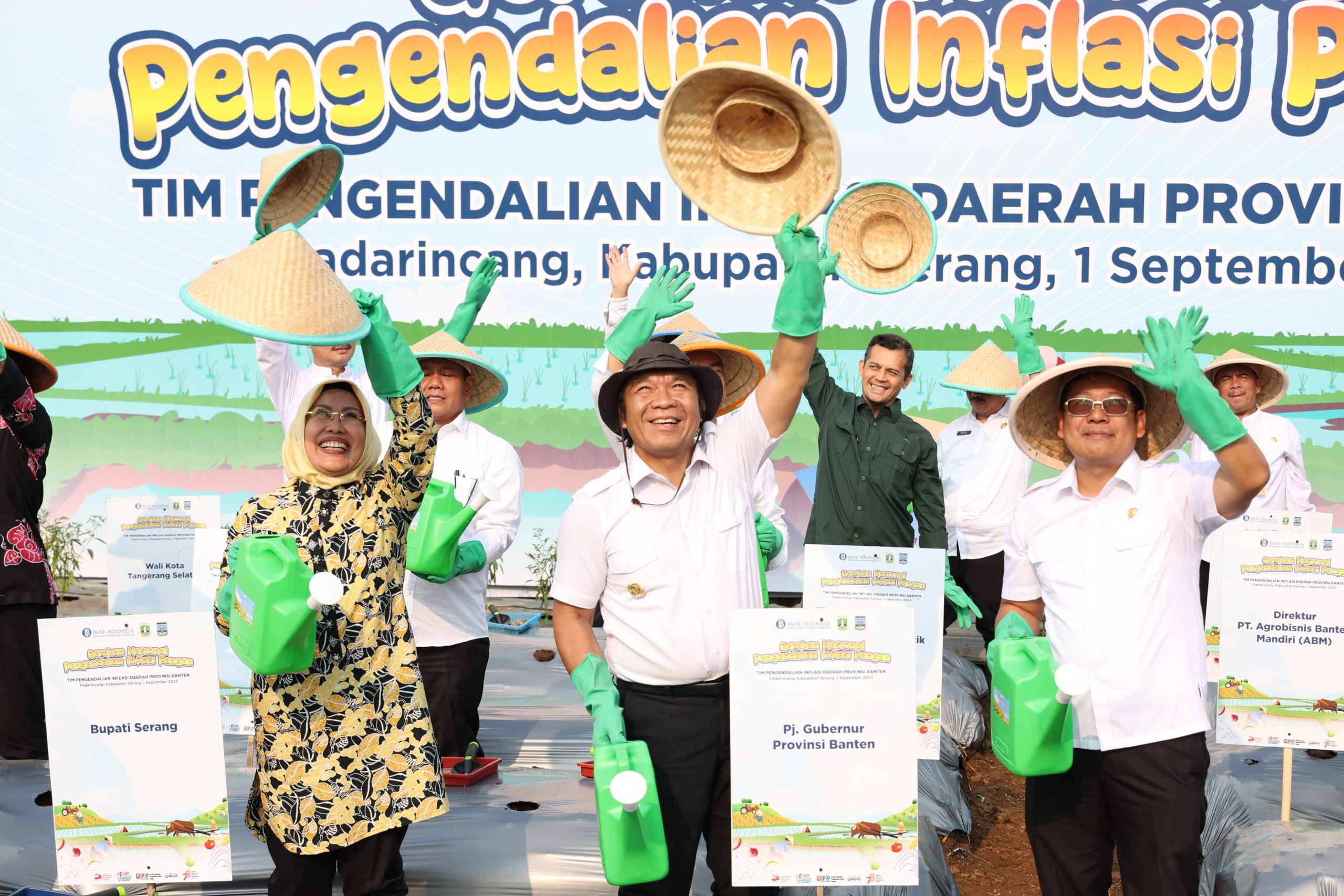 “Atas arahan Bapak Presiden Republik indonesia kita mengambil langkah strategis antara TPID bersama TPIP dalam rangka menekan inflasi, dimana di antara faktor penentu yang sangat signifikan yaitu soal ketahanan pangan,” ungkap Penjabat (Pj) Gubernur Banten Al Muktabar usai Menanam Cabai Merah Bersama di Desa Kadubeureum, Kecamatan Padarincang, Kabupaten Serang, Jumat (1/9/2023).