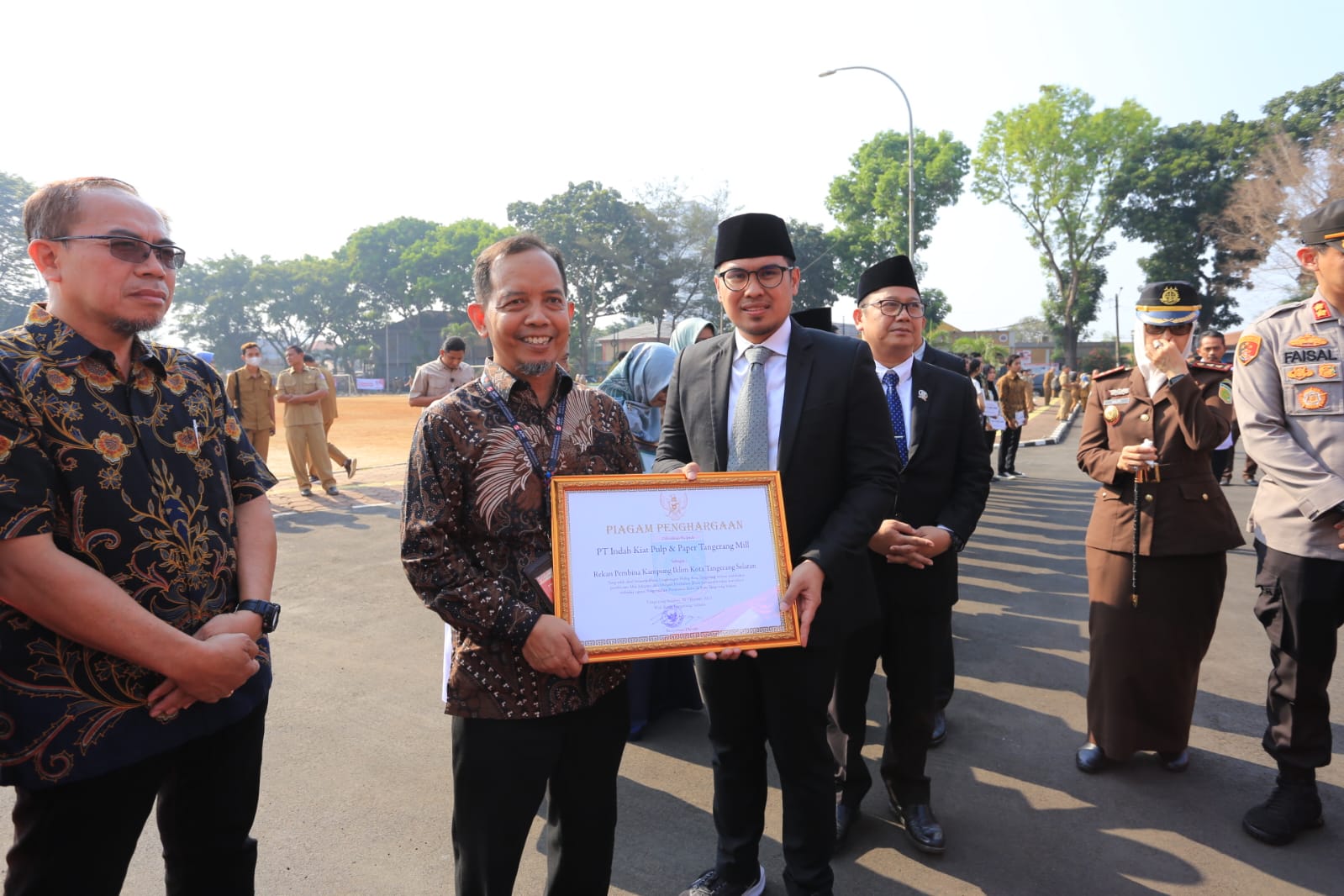 TANGSEL, (suarasiber.co.id) – PT Indah Kiat Pulp & Paper Tbk (IKPP) Tangerang Mill raih Penghargaan Perusahaan Pembina Kampung Iklim dari Pemerintah Kota Tangerang Selatan yang diberikan langsung pada acara peringatan apel bersama hari Sumpah Pemuda, di Lapangan Cilenggang, Serpong. Senin 30 Oktober 2023.