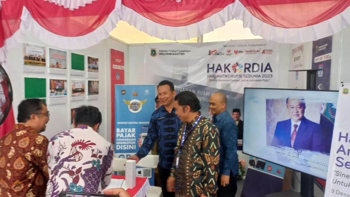 JAKARTA, (ssuarasiber.co.id) – Penjabat (Pj) Gubernur Banten Al Muktabar tinjau stand pelayanan publik yang didirikan Pemerintah Provinsi Banten melalui Badan Pendapatan Daerah (Bapenda) berkolaborasi dengan Inspektorat Provinsi Banten. Stand ini didirikan dalam rangka berpartisipasi memeriahkan Puncak Peringatan Hari Anti Korupsi Sedunia (HAKORDIA) Tahun 2023 di Gedung Istora Senayan Komplek Gelora Bung Karno Jakarta, Selasa (12/12/2023).