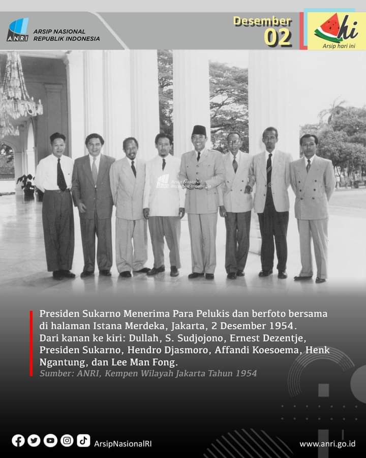 #ArsipHariIni menampilkan foto ketika Presiden Sukarno menerima para pelukis tersebut pada 2 Desember 1954.