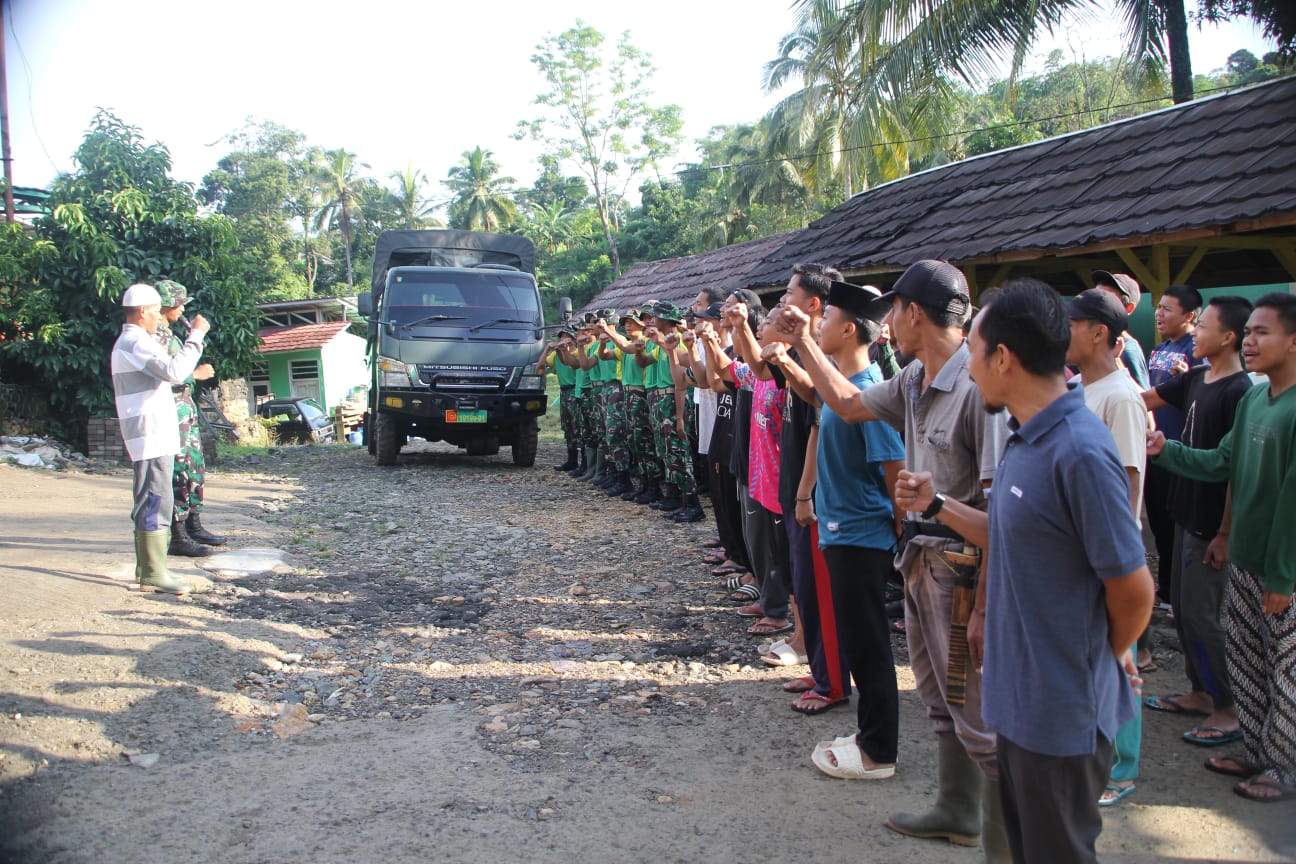 ”Karya Bakti ini juga merupakan wujud nyata kemanunggalan TNI dengan rakyat,” kata Letda Inf. Andre Johan.