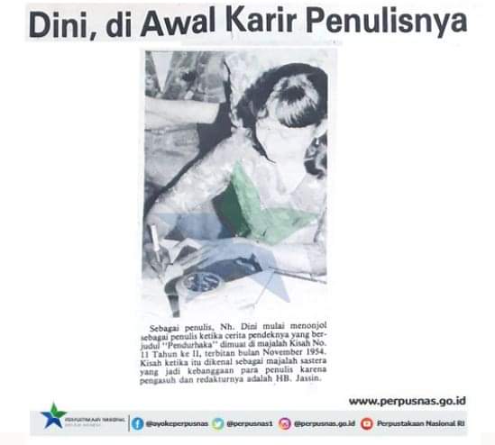 JAKARTA, (suarasiber.co.id) – Di kutip dari Laman Beranda FB Perpustakaan Nasional RI, Berbicara tentang penulis wanita yang satu ini memang tiada habisnya. Yang dimaksud di sini adalah NH Dini atau Nurhayati Sri Hardini. Para #Sahabatperpusnas pasti sudah mengetahui bahkan pernah membaca karya-karya dari NH Dini. Tetapi mungkin sedikit yang tahu bagaimana beliau di masa remaja dan awal karier sebagai penulis.
