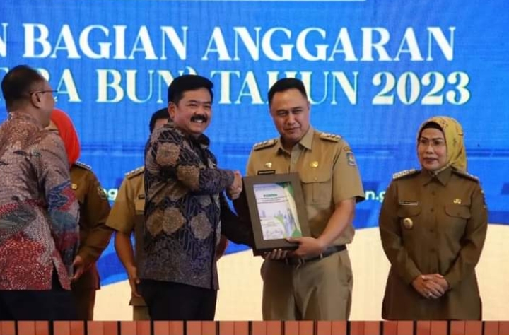 LEBAK, (suarasiber.co.id) – Pj. Bupati Lebak Iwan Kurniawan menerima secara langsung Materi Teknis Rencana Detail Tata Ruang (RDTR), Rabu (10/1/2024). Materi Teknis tersebut diserahkan oleh Menteri Agraria dan Tata Ruang/Badan Pertanahan Nasional (ATR/BPN), Hadi Tjahjanto di Sheraton Grand Jakarta Gandaria City Hotel.