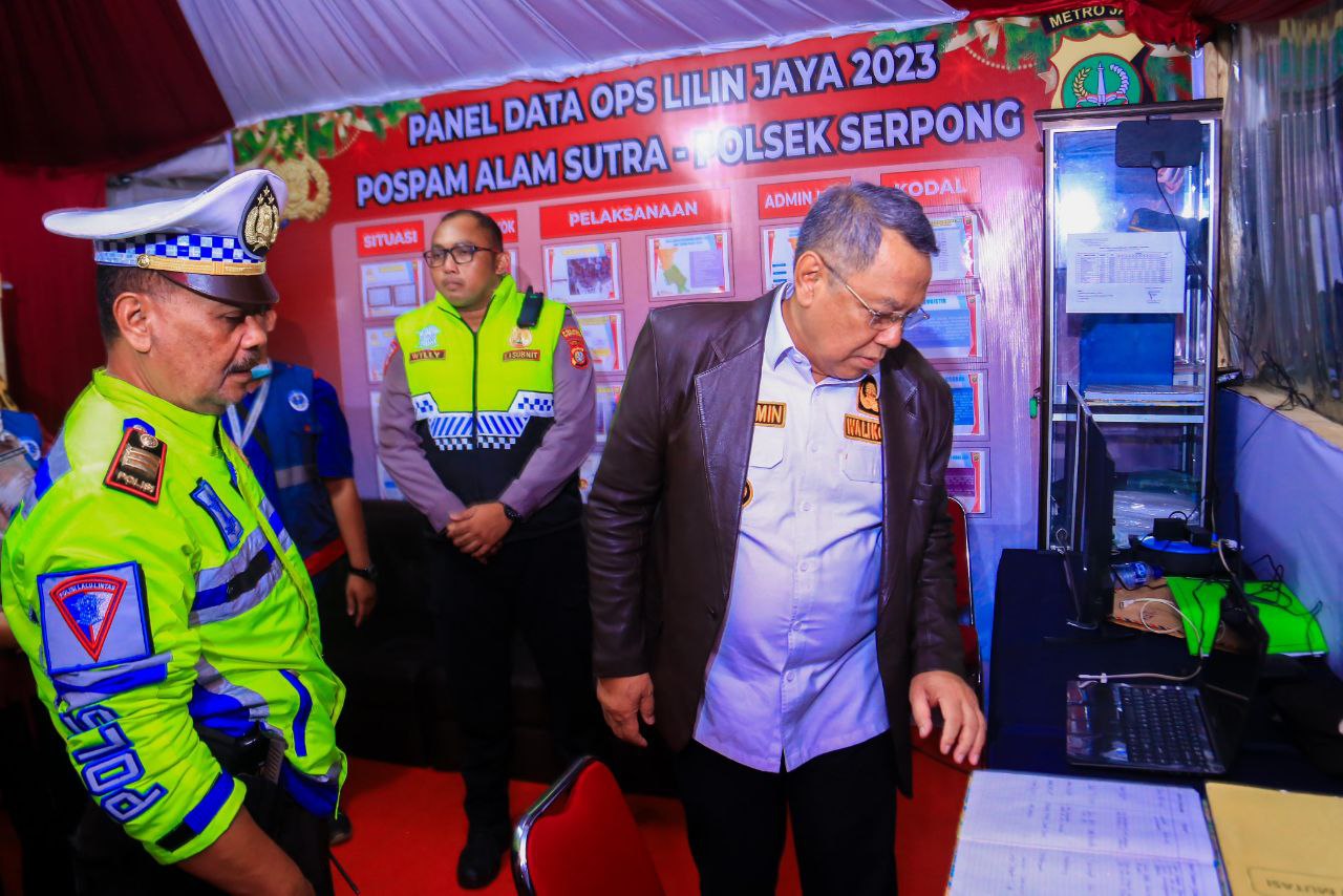 SERPONG, (suarasiber.co.id) – Guna memastikan perayaan Tahun Baru berjalan aman dan kondusif, Wali Kota Tangerang Selatan Benyamin Davnie didampingi Wakil Wali Kota Pilar Saga Ichsan dan Sekretaris Daerah Bambang Noertjahjo bersama Forkopimda meninjau langsung Posko Pengamanan (Pospam) Natal dan Tahun Baru 2024, pada Minggu malam (31/12).