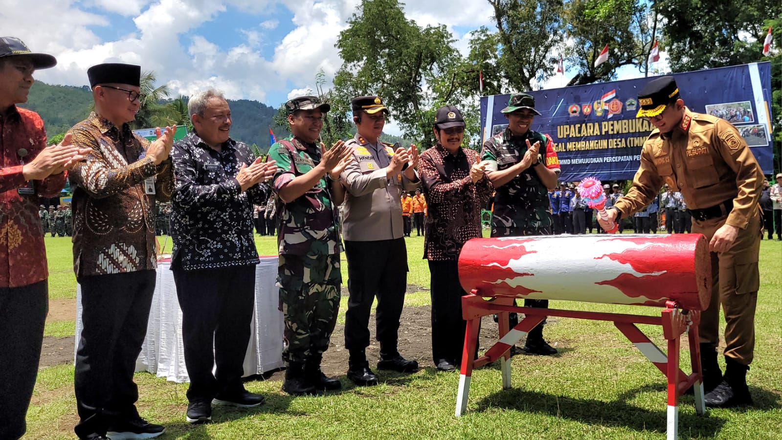 “Melalui TMMD ini, mari kita optimalkan berbagai program kegiatan lintas sektoral guna membantu mengentaskan kemiskinan ekstrim, memperbaiki infrastruktur-infrastuktur yang rusak, dan menangani permasalahan-permasalahan lain yang ada di desa. Karena keamanan dan kenyamanan adalah dua hal utama yang harus kita berikan kepada masyarakat,” kataya
