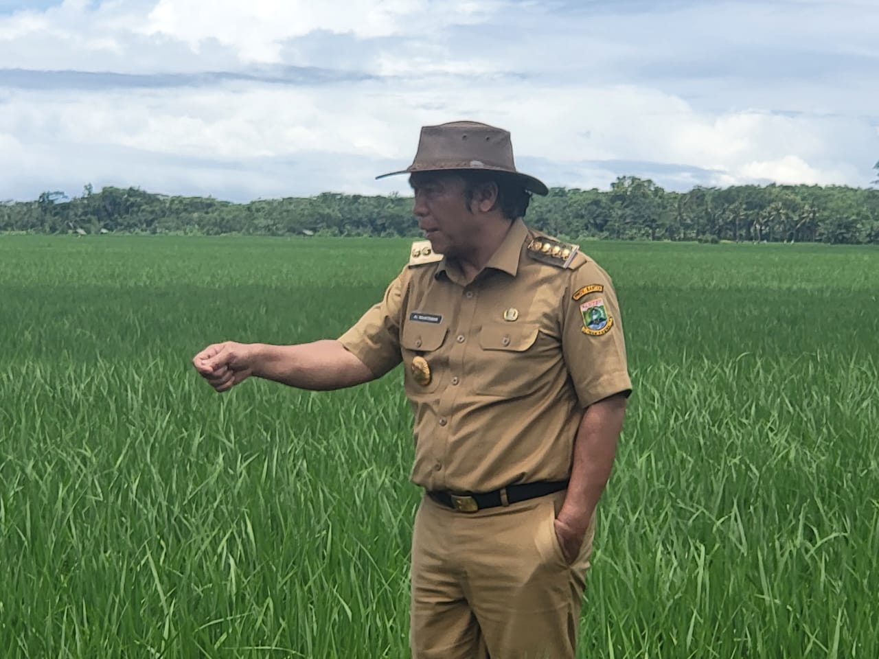 PANDEGLANG, (suarasiber.co.id) – Penjabat (Pj) Gubernur Banten Al Muktabar meninjau lokasi penangkaran benih padi kelompok tani mandiri Kampung Batu Jaya, Desa Umbulan, Kecamatan Cikeusik, Kabupaten Pandeglang, Selasa (5/3/2024). Peninjauan itu dilakukan untuk memastikan ketahanan pangan di Provinsi Banten aman dan terjaga baik dari hulu sampai hilir.
