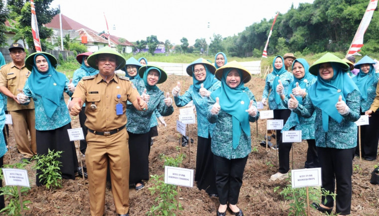 TANGERANG, (suarasiber.co.id) — Ketua Tim Penggerak Pemberdayaan Kesejahteraan Keluarga (TP-PKK) Kabupaten Tangerang Mirasari Andi Ony berserta unsur TP-PKK Kecamatan Cikupa, menanam bibit cabai di Kebun Kecamatan , Senin (4/03/24). Aksi tersebut dilakukan serentak bersama Ibu Negara Iriana Joko Widodo secara virtual di seluruh Indonesia.