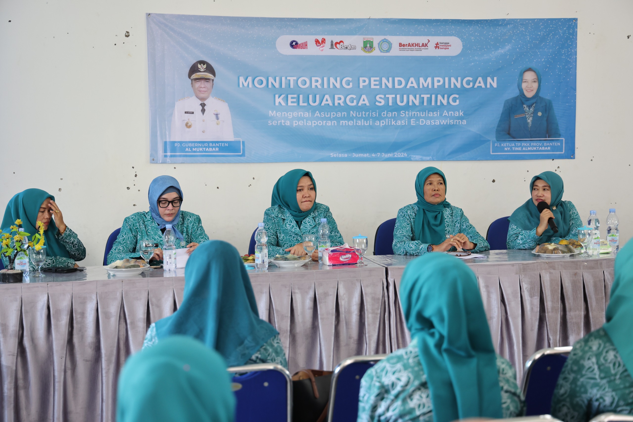 LEBAK, (suarasiber.co.id) – Penjabat (Pj) Ketua Tim Penggerak Pemberdayaan Kesejahteraan Keluarga (TP PKK) Provinsi Banten melakukan Monitoring Pendampingan Keluarga Stunting di Kantor Kecamatan Cibadak, Kabupaten Lebak, Selasa (4/6/2024). Para kader PKK dan orang tua dengan anak usia dini mendapatkan penguatan dan edukasi tentang asupan nutrisi dan stimulasi anak serta pelaporan melalui aplikasi e-dasawisma.