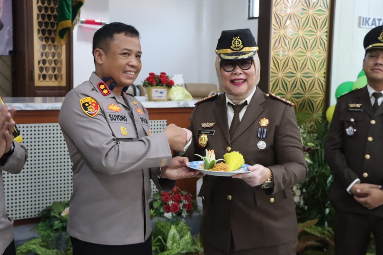 LEBAK,(suarasiber.co.id) -Di Hari Bhakti Adhiyaksa ke-64, Kapolres Lebak Polda Banten AKBP Suyono, SIK memberikan Kejutan Tumpeng ke Kajari Lebak Mayasari SH. MH di Kantor Kejaksaan Negeri Lebak Jl. M.H. Iko Jatmiko No 3 Rangkasbitung, Kabupaten Lebak. Senin (22/7/2024).