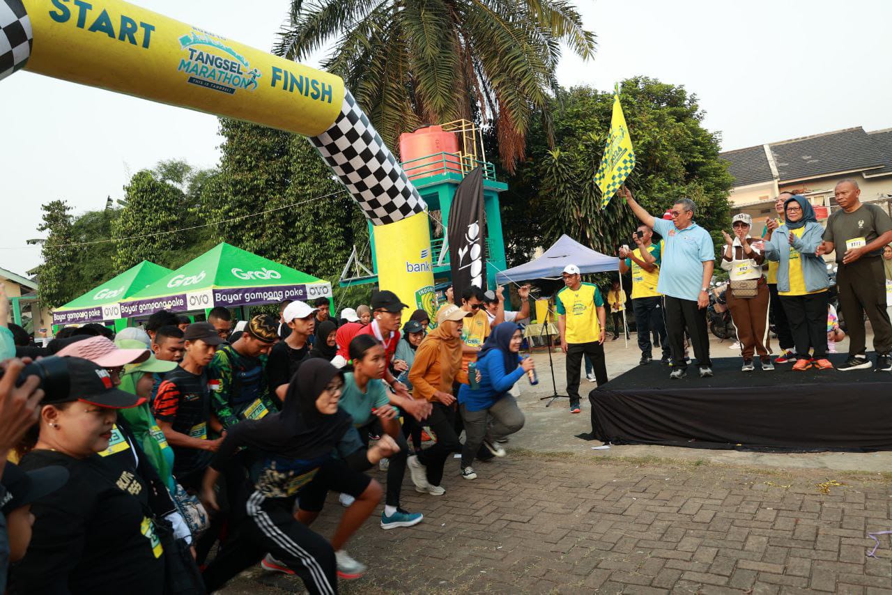 Ribuan peserta Road to Tangsel Marathon di Kecamatan Ciputat dilepas oleh Wali Kota Tangerang Selatan Benyamin Davnie, pada Minggu (21/07/2024).