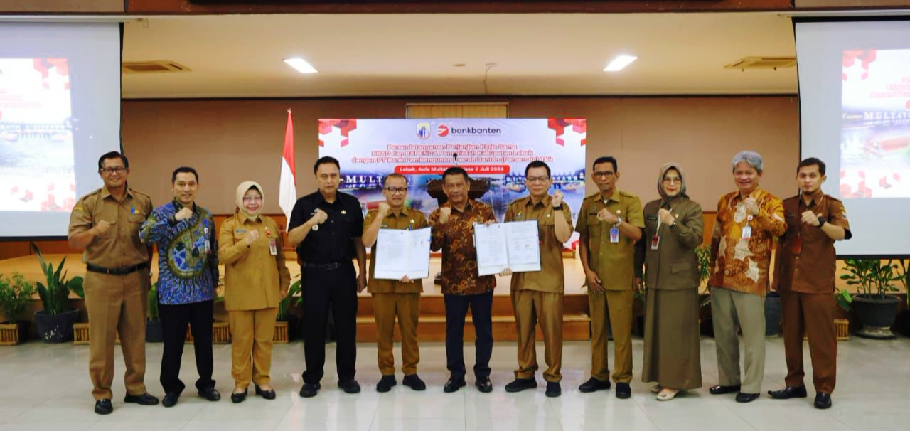 Penempatan RKUD ke Bank Banten itu ditandai dengan Penandatanganan Perjanjian Kerja Sama BPKAD dan Bapenda Pemerintah Kabupaten Lebak dengan PT Bank Pembangunan Daerah Banten (Perseroda) Tbk dilaksanakan di Aula Multatuli, Sekretariat Daerah (Setda) Kabupaten Lebak, Selasa (2/7/2024).
