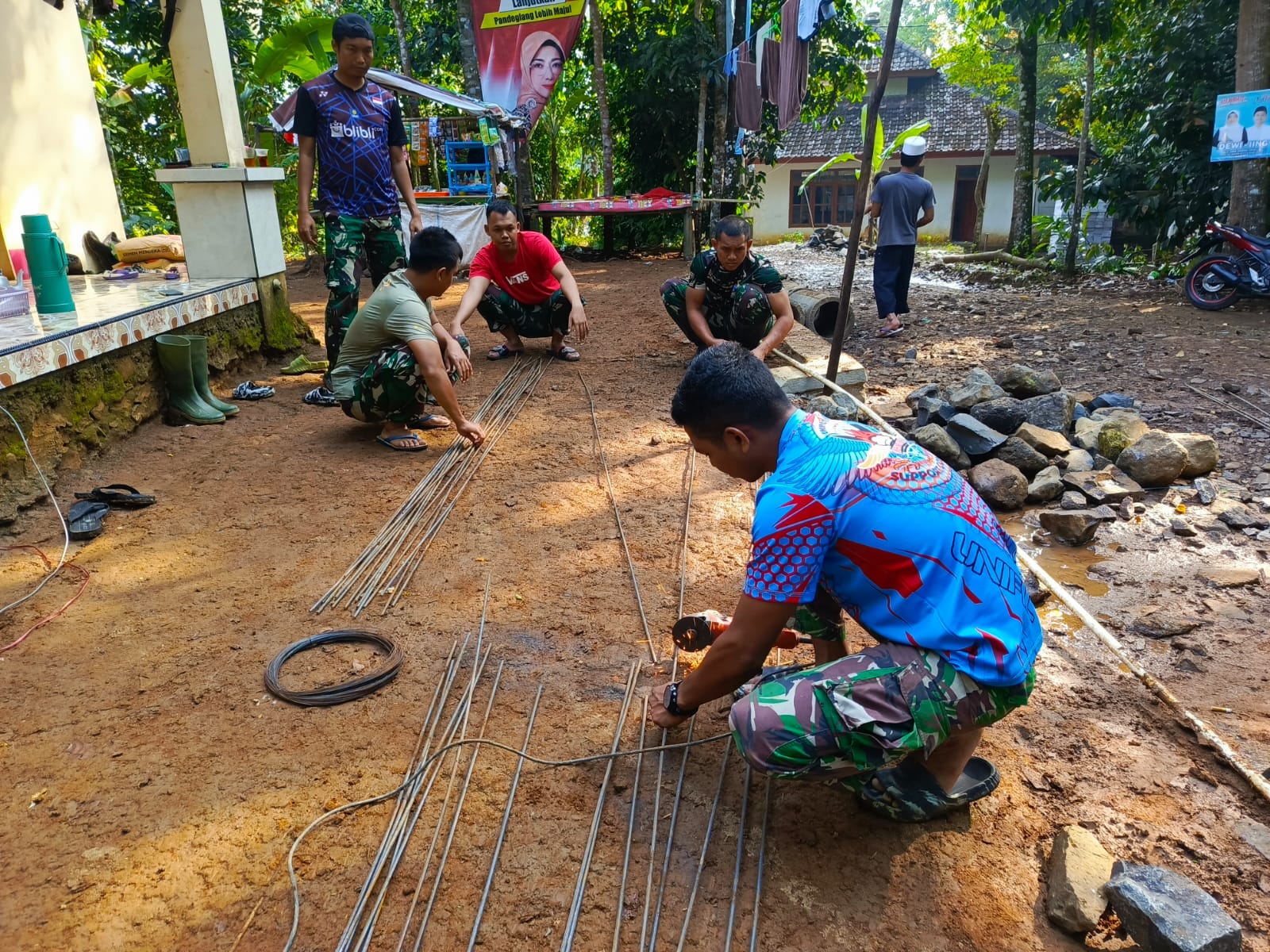 “Hari ini ada beberapa pekerjaan yang dilaksanakan diantaranya pembangunan rumah tidak layak huni, pembuatan MCK mushola dan pengerasan jalan yang menghubungkan kampung Nanggorak dan kampung Ciapus Lega desa Cikumbueun, mudah mudahan semua pekerjaan bisa selesai sesuai terget”, ucapnya.