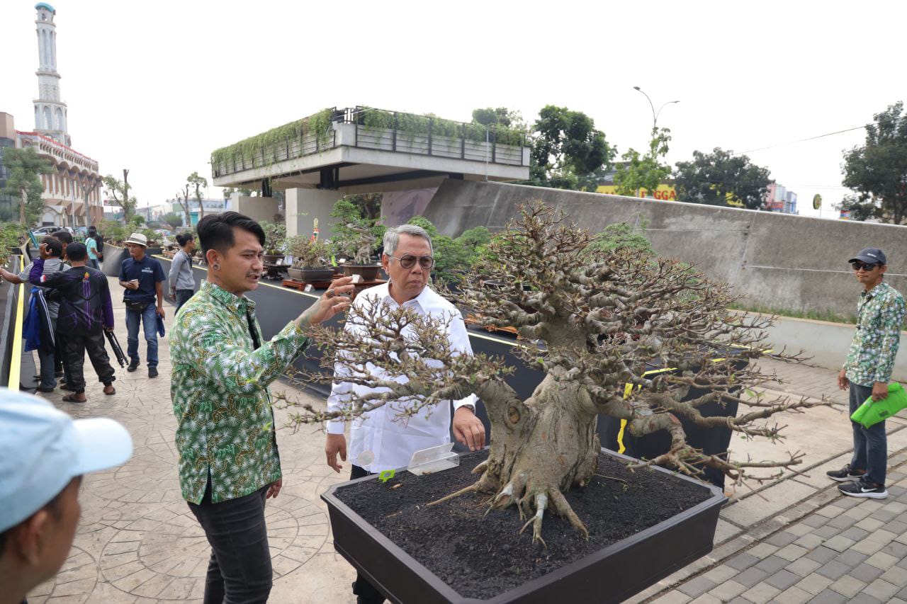 Wali Kota Tangerang Selatan, Benyamin Davnie, yang juga menggemari seni bonsai, hadir untuk melihat berbagai jenis bonsai.
