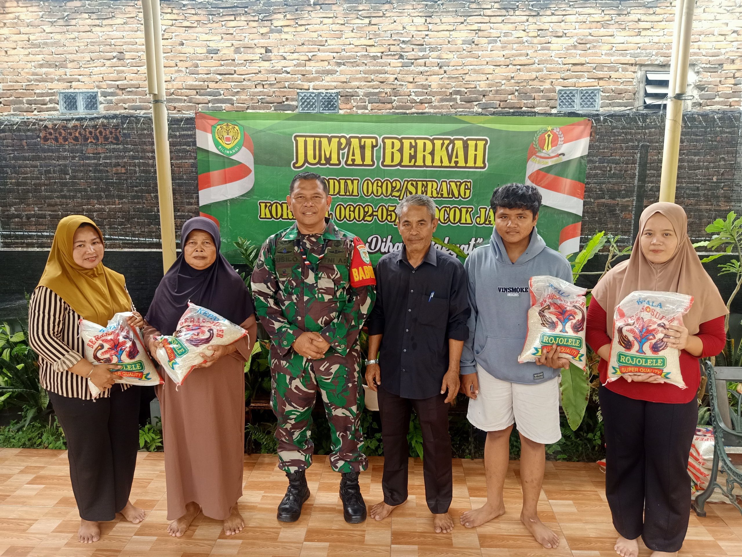 SERANG, (suarasiber.co.id) – Babinsa Koramil 0602-05/Cipocok Jaya bersama jajaran melaksanakan kegiatan pembagian beras dalam rangka Jum’at Berkah di Lingkungan Prisma, Kelurahan Panancangan, Kecamatan Cipocok Jaya, Kota Serang. Jumat 27 Desember 2024.