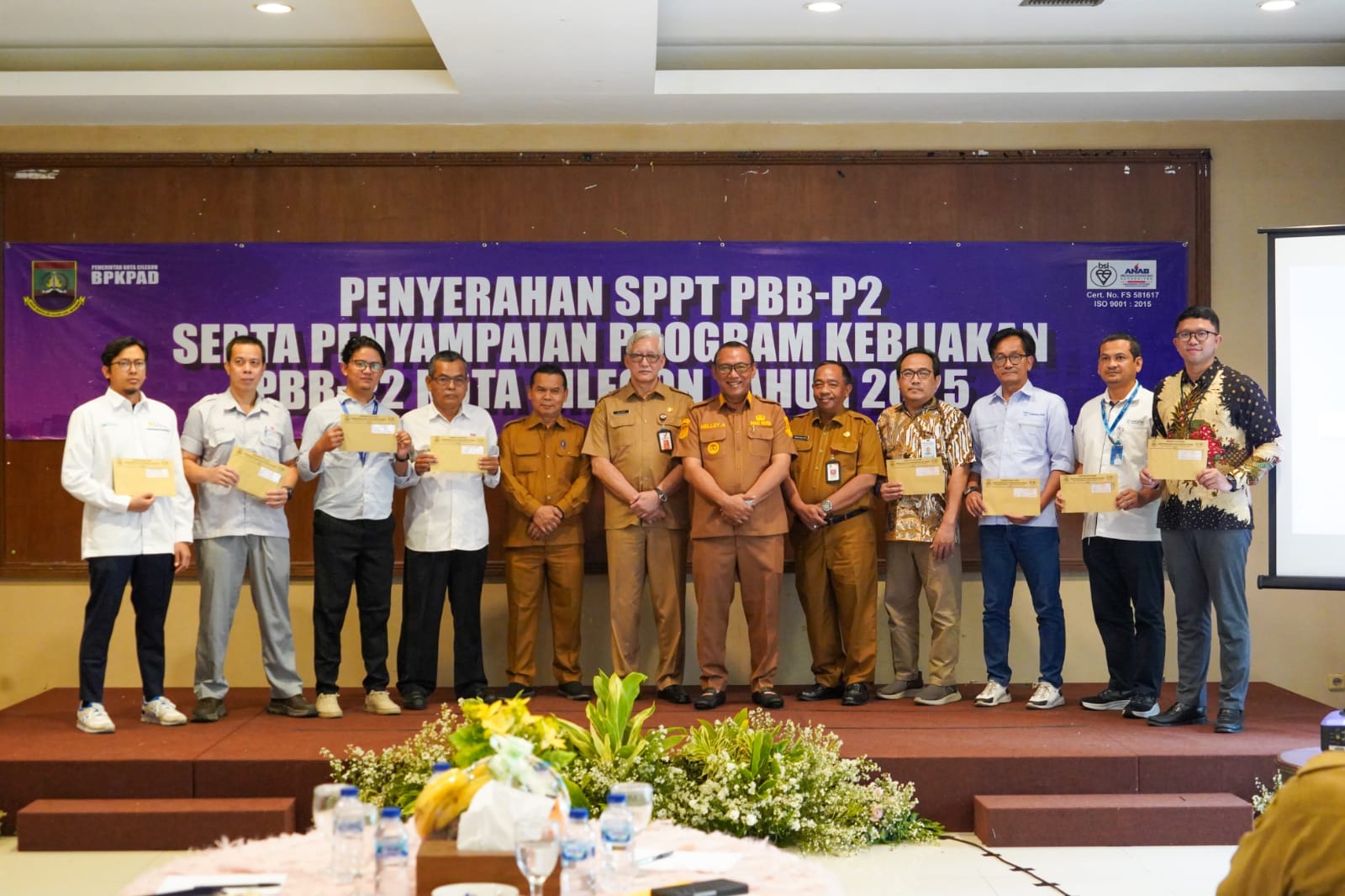CILEGON, (suarasiber.co.id) – Pemerintah Kota (Pemkot) Cilegon menyerahkan Surat Pemberitahuan Pajak Terutang Pajak Bumi dan Bangunan Perkotaan dan Pedesaan (SPPT PBB-P2) kepada 7 industri dan 1 perbankan. Penyerahan secara simbolis dilakukan langsung oleh Wali Kota Cilegon Helldy Agustian didampingi Sekretaris Daerah Kota Cilegon Maman Mauludin dan Kepala Badan Pengelolaan Keuangan dan Aset Daerah (BPKAD) Dana Sujaksani di Bamboo Café Sari Kuring Indah, Senin 20 Januari 2025.