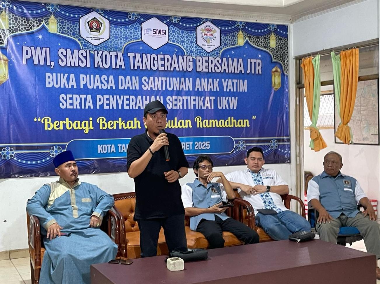LEBAK, (suarasiber.co.id) – Di bulan suci ramadhan yang memasuki hari ke 26, Ketua PWI Banten Rian Nopandra menyerahkan sertifikat UKW anggota PWI Kota Tangerang dalam kegiatan buka bersama yang digelar oleh PWI, SMSI, dan JTR Kota Tangerang di Sekber, Kota Tangerang, Rabu (26/3/2025).