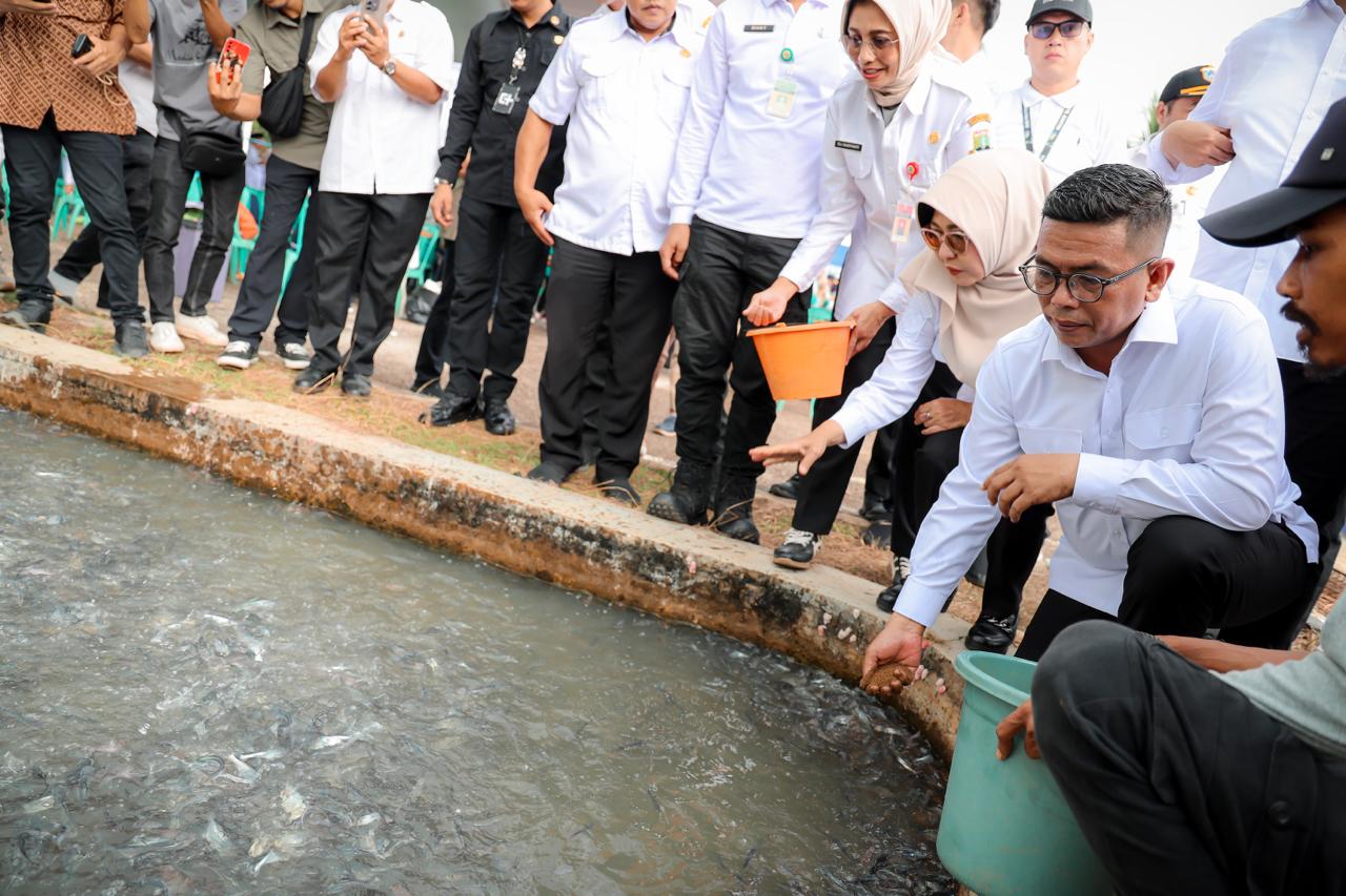 PANDEGLANG, (suarasiber.co.id) -;Gubernur Banten Andra Soni membuka Program Banten Makmur Melalui Sektor Kelautan dan Perikanan di UPTD Produksi dan Pengembangan Perikanan Budidaya Dinas Kelautan dan Perikanan (DKP) Provinsi Banten di Desa Curugbarang, Kecamatan Cipeucang, Kabupaten Pandeglang, Rabu (21/5/2025). Program unggulan itu fokus pada pengembangan sektor kelautan dan perikanan.