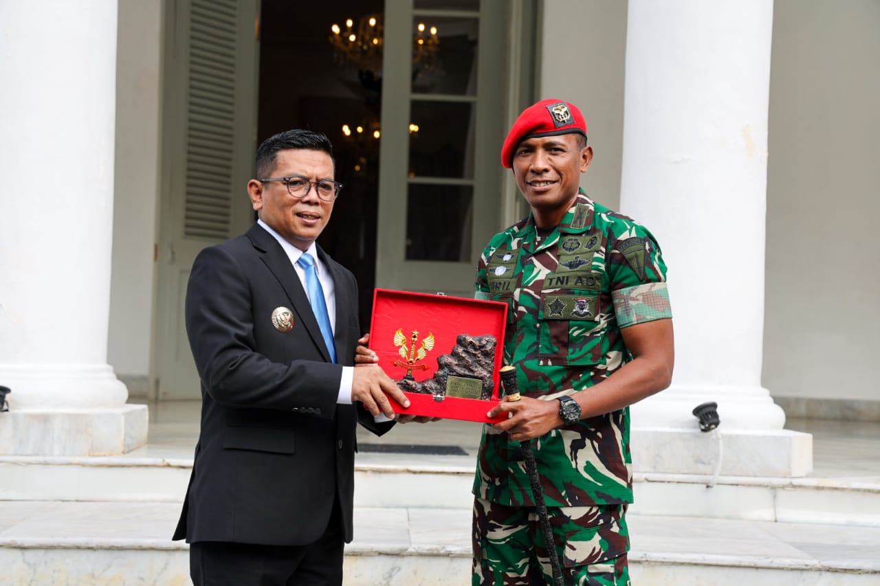 SERANG, (suarasiber.co.id) – Gubernur Banten Andra Soni terima kunjungan Komandan Grup 1 Komando Pasukan Khusus (Kopassus) TNI AD di Ruang Rapat Gedung Negara Provinsi Banten Jl. Brigjen KH Syam’un No. 5 Kota Serang, Selasa (27/5/2025).