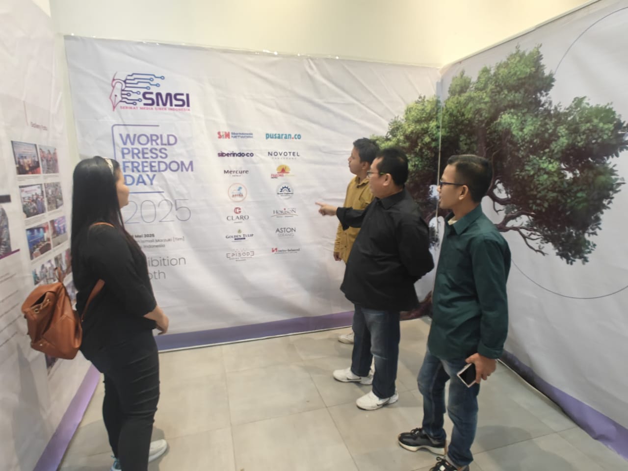 Dalam poster pameran bertajuk “Suara Media Siber dari Daerah untuk Dunia”, SMSI menggarisbawahi peran penting media daerah dalam menyuarakan kebenaran dan membangun masyarakat melek informasi di tengah derasnya arus digitalisasi.