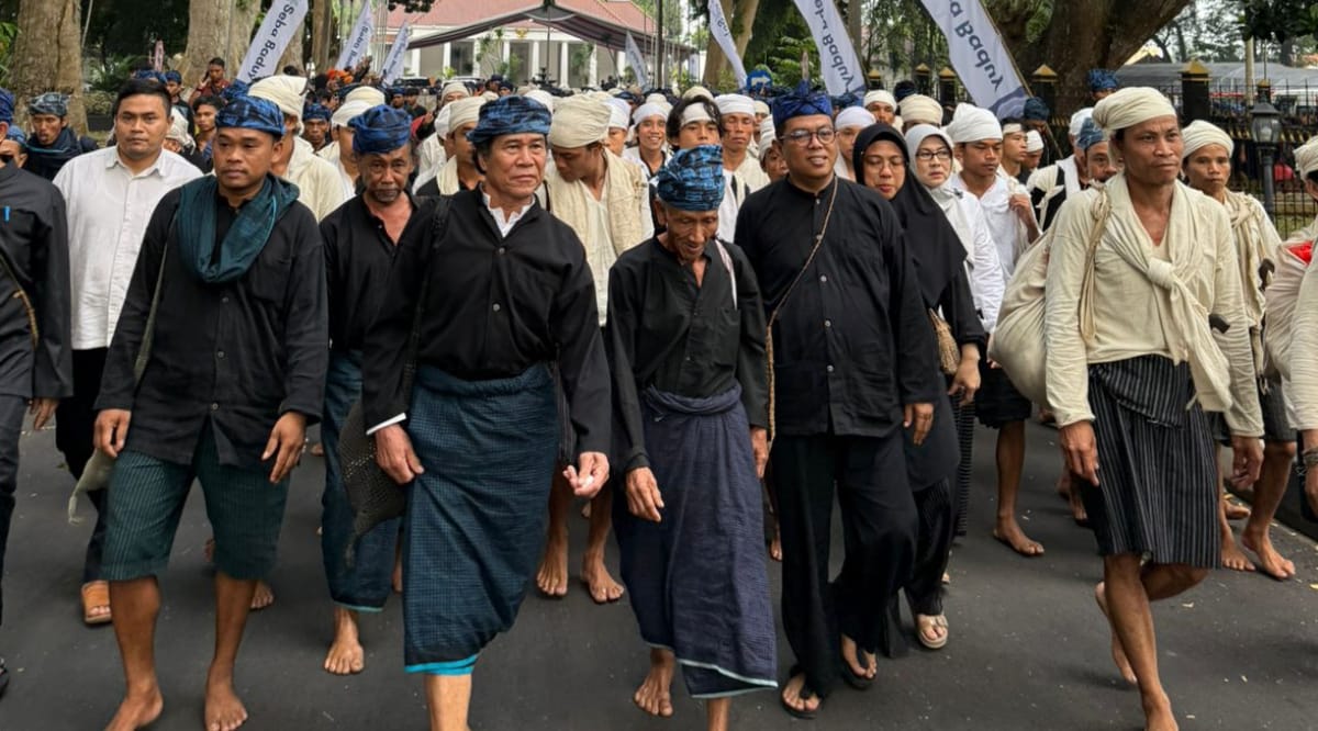 KOTA SERANG, (suarasiber.co.id) – Gubernur Banten Andra Soni sebagai Bapak Gede melakukan Mumuluk Bareng (Sarapan Pagi Bersama, red) dengan masyarakat Baduy di Halaman Gedung Negara Provinsi Banten Jl Brigjen KH Syam’un No. 5 Kota Serang, Minggu (4/5/2025). Turut mendampingi Ketua Tim Penggerak Pemberdayaan Kesejahteraan Keluarga (TP PKK) Provinsi Banten Tinawati Andra Soni dan Pelaksana Tugas (Plt) Kepala Dinas Pendidikan dan Kebudayaan Provinsi Banten, Lukman.