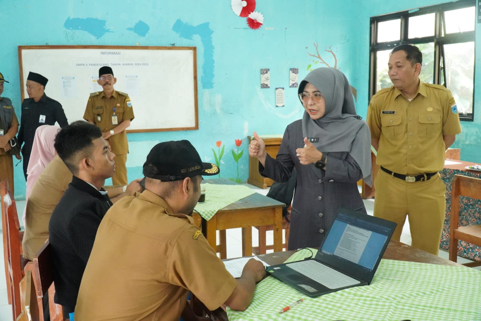 Dalam kunjungannya, Bupati Dewi meninjau seluruh tahapan proses penerimaan siswa baru, mulai dari pendaftaran, verifikasi administrasi, hingga pelaksanaan wawancara.