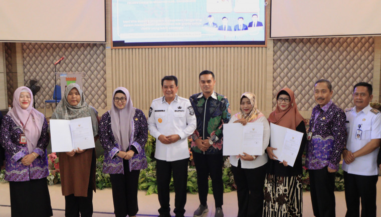 Pada acara tersebut, Bupati dan Wakil Bupati Tangerang menyerahkan secara simbolis NIB kepada pelaku UMKM di Kecamatan Kelapa Dua.