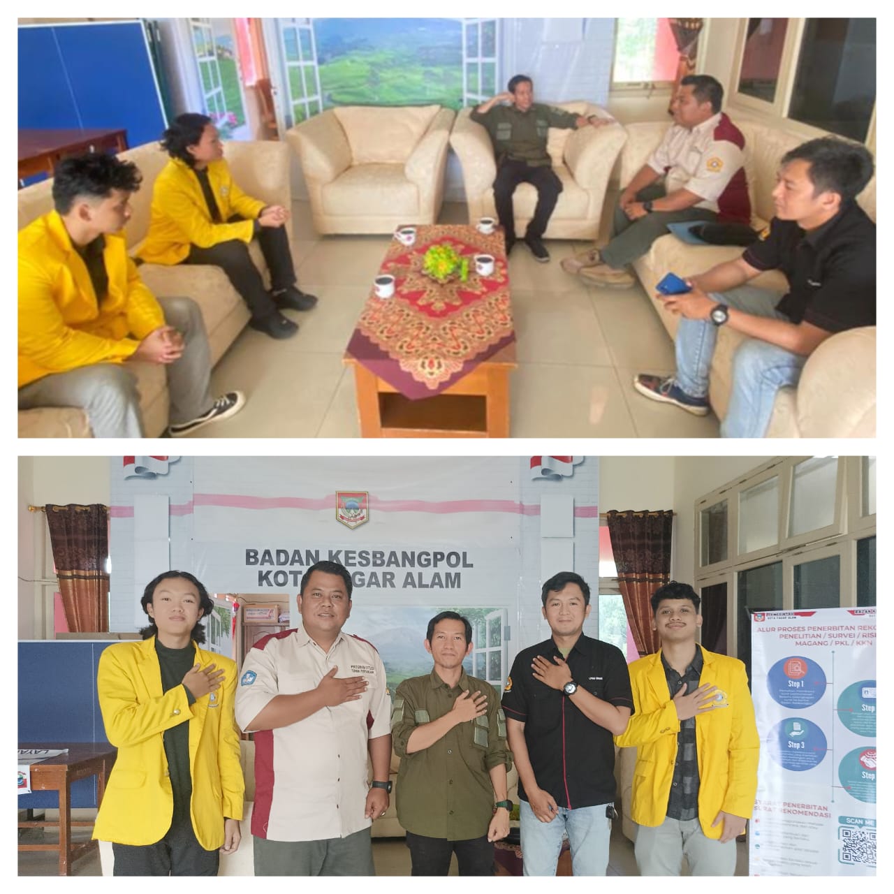 Kepala Badan Kesbangpol Kota Pagar Alam, Nyayu Dwi Lusiana ST MSI, didampingi Analis Kebijakan Ahli Muda, Hendra Marta, SE, M.Sk mengapresiasi dan menyatakan kebanggaannya atas terpilihnya Kota Pagar Alam sebagai lokasi tujuan KKN mahasiswa Unsri. “Kami berharap program KKN ini dapat mendorong pemajuan daerah, terutama dalam memperkenalkan berbagai ide baru yang dapat meningkatkan kesejahteraan masyarakat setempat’ ujar Nyayu Dwi Lusiana.