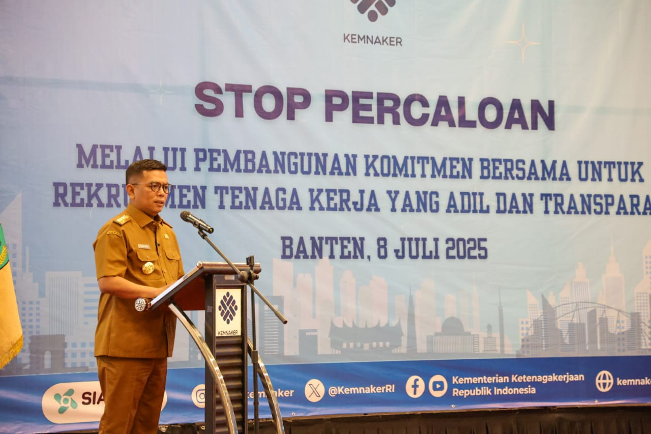 Hal itu disampaikan Andra Soni saat menghadiri kegiatan Stop Percaloan Melalui Pembangunan Komitmen Bersama Untuk Rekrutmen Tenaga Kerja yang Adil dan Transparan yang diselenggarakan oleh Kementerian Ketenagakerjaan (Kemenaker) Republik Indonesia di Kawasan Industri Modern Cikande, Kabupaten Serang, Selasa (8/7/2025).