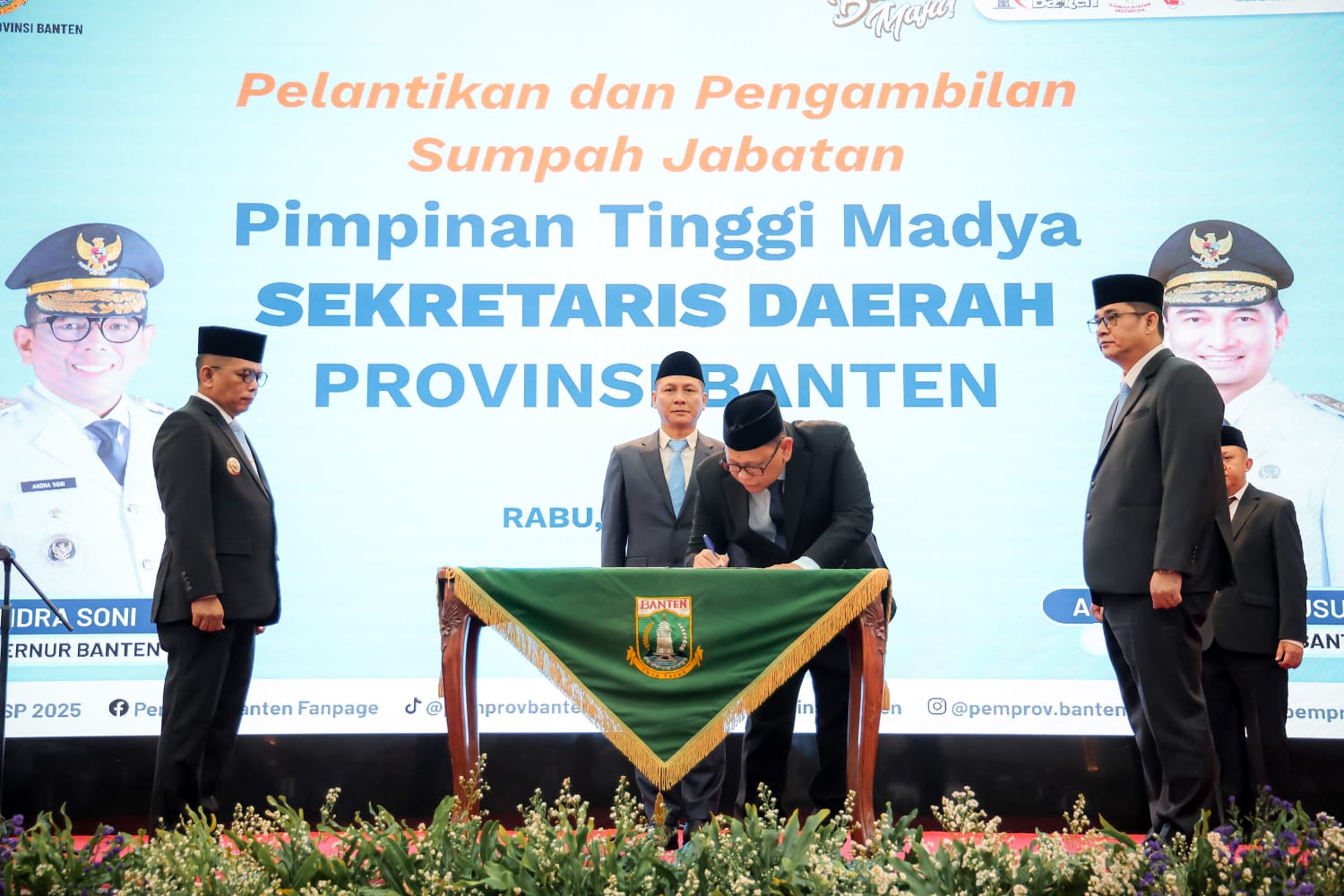 SeRANG, (suarasiber.co.id) – Gubernur Banten Andra Soni resmi melantik Deden Apriandhi Hartawan sebagai Sekretaris Daerah (Sekda) Provinsi Banten dalam upacara pelantikan di Pendopo Gubernur Banten, KP3B, Kota Serang, Rabu (9/7/2025). Pelantikan ini berdasarkan Keputusan Presiden Republik Indonesia Prabowo Subianto Nomor 104/TPA Tahun 2025.