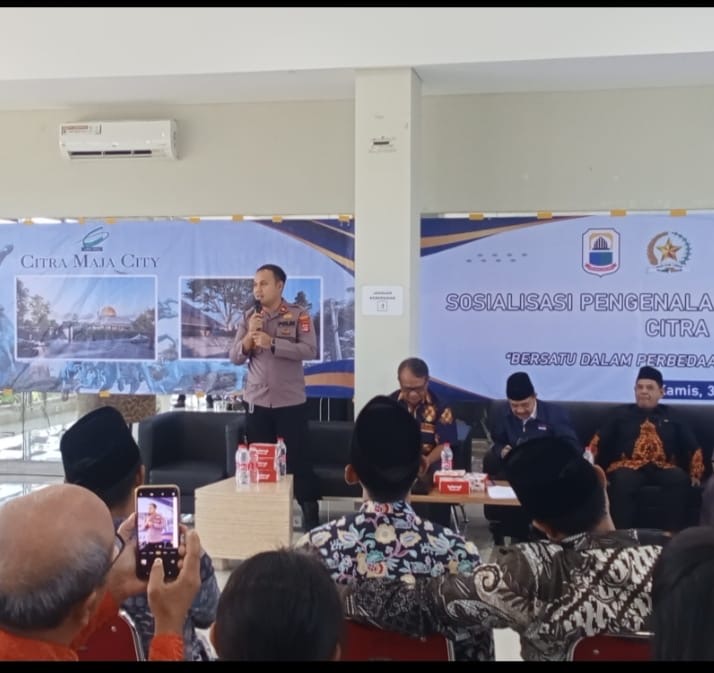 LEBAK, (suarasiber.co.id) – Kapolsek Maja, Kompol Achri Dwi Yunito, S,I.K, M.H menghadiri kegiatan sosialisasi pengenalan pengurus rumah ibadah yang digelar oleh manajemen Citra Maja City pada Senin (29/7). Acara ini mengusung tema “Bersatu dalam Perbedaan, Berbeda dalam Persatuan”, serta dihadiri oleh unsur Muspika Kecamatan Maja, tokoh agama, tokoh masyarakat, dan warga setempat.