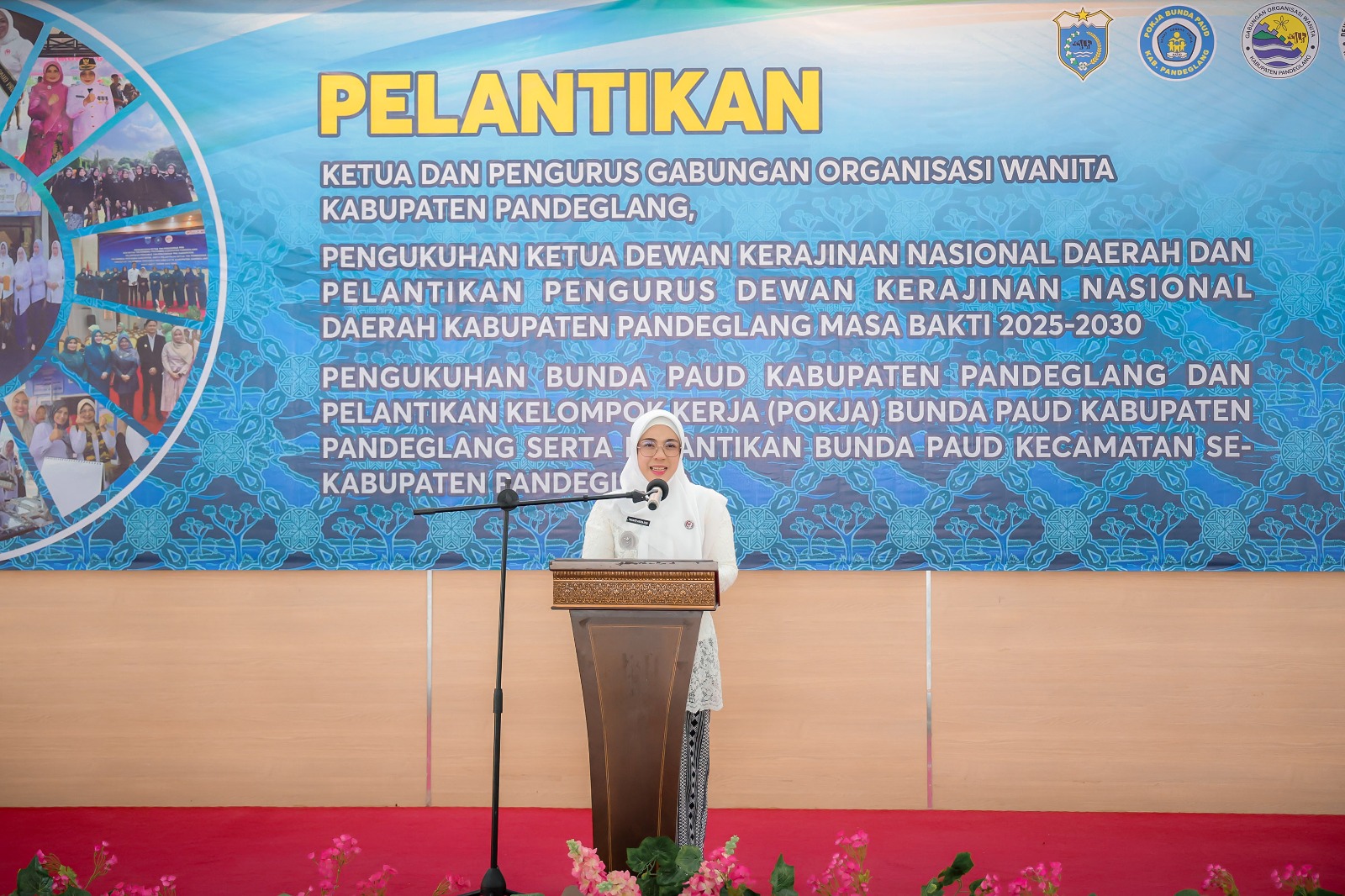 Demikian disampaikan Tinawati Andra Soni saat menghadiri Pelantikan Ketua dan Pengurus Gabungan Organisasi Wanita (GOW) Kabupaten Pandeglang, Pengukuhan Ketua Dekranasda Kabupaten Pandeglang dan Pelantikan Pengurus Dekranasda Kabupaten Pandeglang Masa Bakti 2025-2030, Pengukuhan Bunda PAUD Kabupaten Pandeglang dan Pelantikan Kelompok Kerja Bunda PAUD Kabupaten Pandeglang serta Pelantikan Bunda PAUD Kecamatan se-Kabupaten Pandeglang di Gedung Negara Pendopo Bupati Pandeglang, Senin (21/7/2025).