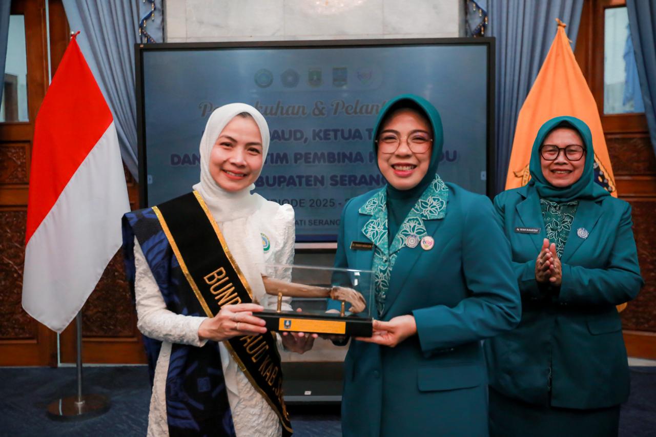 SERANG, (suarasiber.co.id) – Ketua Tim Penggerak Pemberdayaan dan Kesejahteraan Keluarga (TP PKK) Provinsi Banten Tinawati Andra Soni melantik Bunda PAUD, Ketua Tim Pembina Posyandu dan Ketua TP PKK Kabupaten Serang periode 2025-2030. Pelantikan dilakukan di Pendopo Bupati Serang, Jl Veteran No. 1, Kota Serang, Jumat (4/7/2025).
