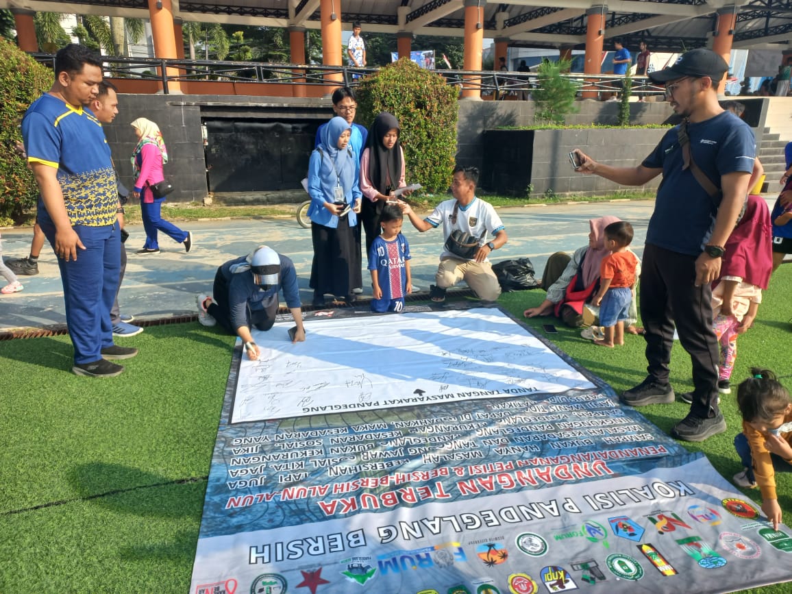 Aksi damai ini diawali sejak pagi hari sambil jalan santai turun langsung menggalang petisi masyarakat dan membersihkan kawasan Alun-Alun sebagai bentuk kampanye simbolik untuk menolak kiriman sampah dan mendorong tanggung jawab bersama dalam menjaga lingkungan hidup.