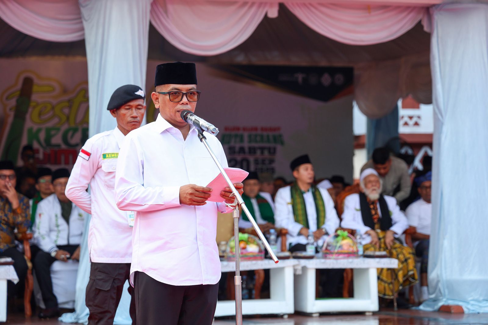 SERANG, (suarasiber.co.id) – Gubernur Banten Andra Soni menghadiri Festival Keceran Kebudayaan Seni Tari (Kesti) Tjimande Tari Kolot Kebon Djeruk Hilir (TTKKDH). Festival ini sekaligus memecahkan rekor MURI atas penampilan kolosal Golempangan dengan 1.500 peserta anak usia sekolah di Alun-alun Barat Kota Serang, Sabtu (20/9/2025).