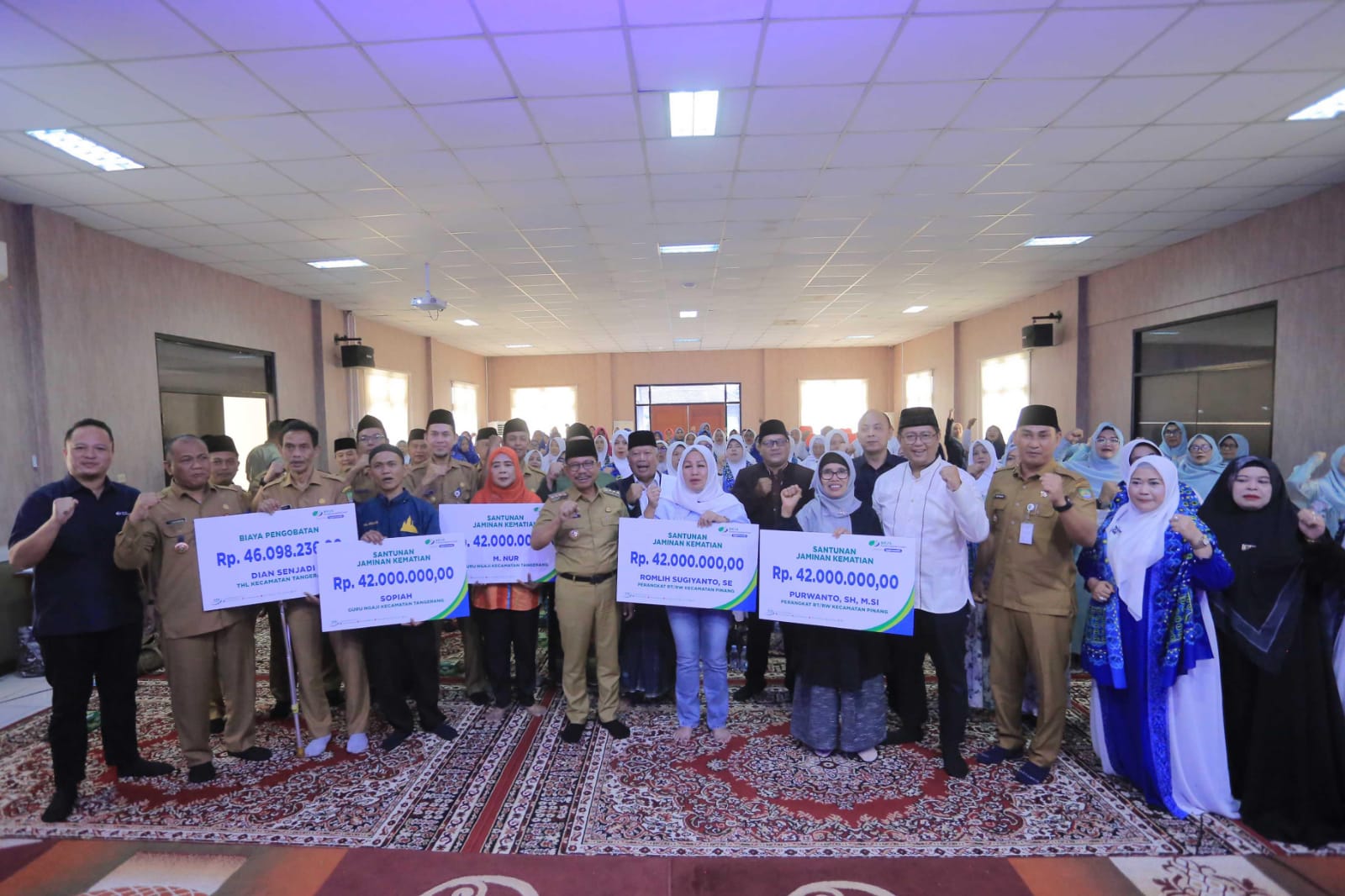 Santunan JKM senilai Rp42 juta per penerima diserahkan secara simbolis kepada ahli waris dan perwakilan penerima manfaat oleh Wali Kota Tangerang, H. Sachrudin. Penyerahan dilakukan dalam acara Pengajian Rutin Badan Kontak Majelis Taklim (BKMT) di Aula Kecamatan Tangerang, Selasa (23/09/2025).