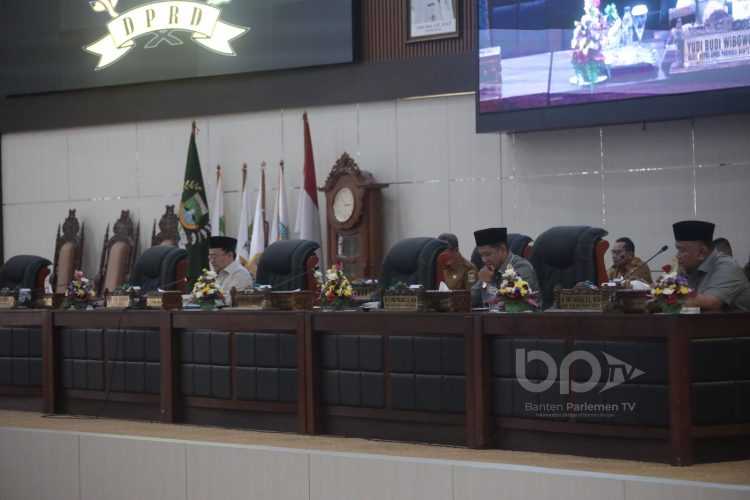 Rapat ini dipimpin oleh Wakil Ketua DPRD Banten Yudi Budi Wibowo didampingi oleh Wakil Ketua DPRD Banten Budi Prajogo dan Eko Susilo.