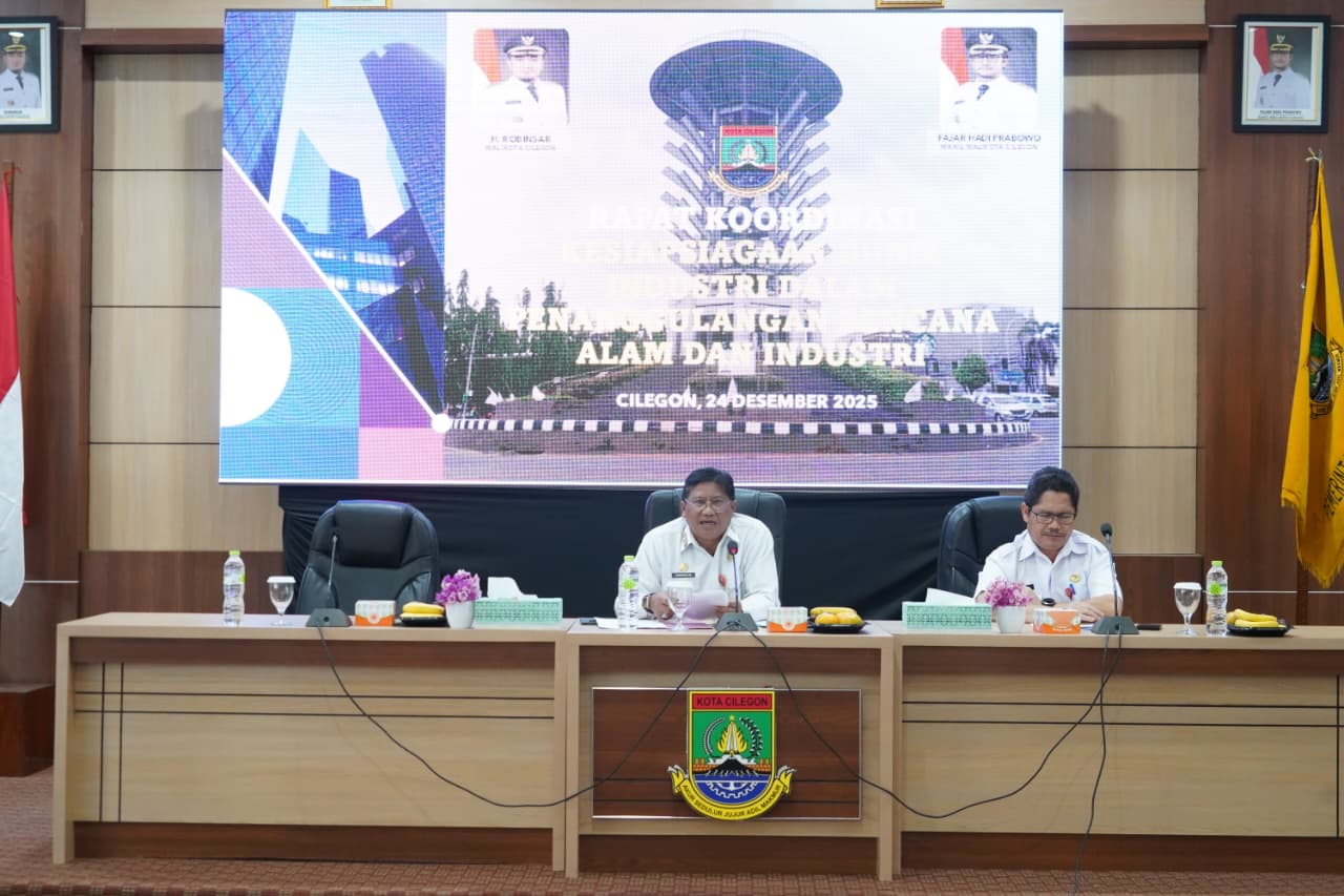CILEGON, (suarasiber.co.id) – Pemerintah Kota Cilegon melalui Badan Penanggulangan Bencana Daerah Kota Cilegon menggelar Rapat Koordinasi Kesiapsiagaan Dunia Industri dalam Penanggulangan Bencana Alam dan Industri yang berlangsung di Aula Setda II Kota Cilegon, Rabu 24 Desember 2025.