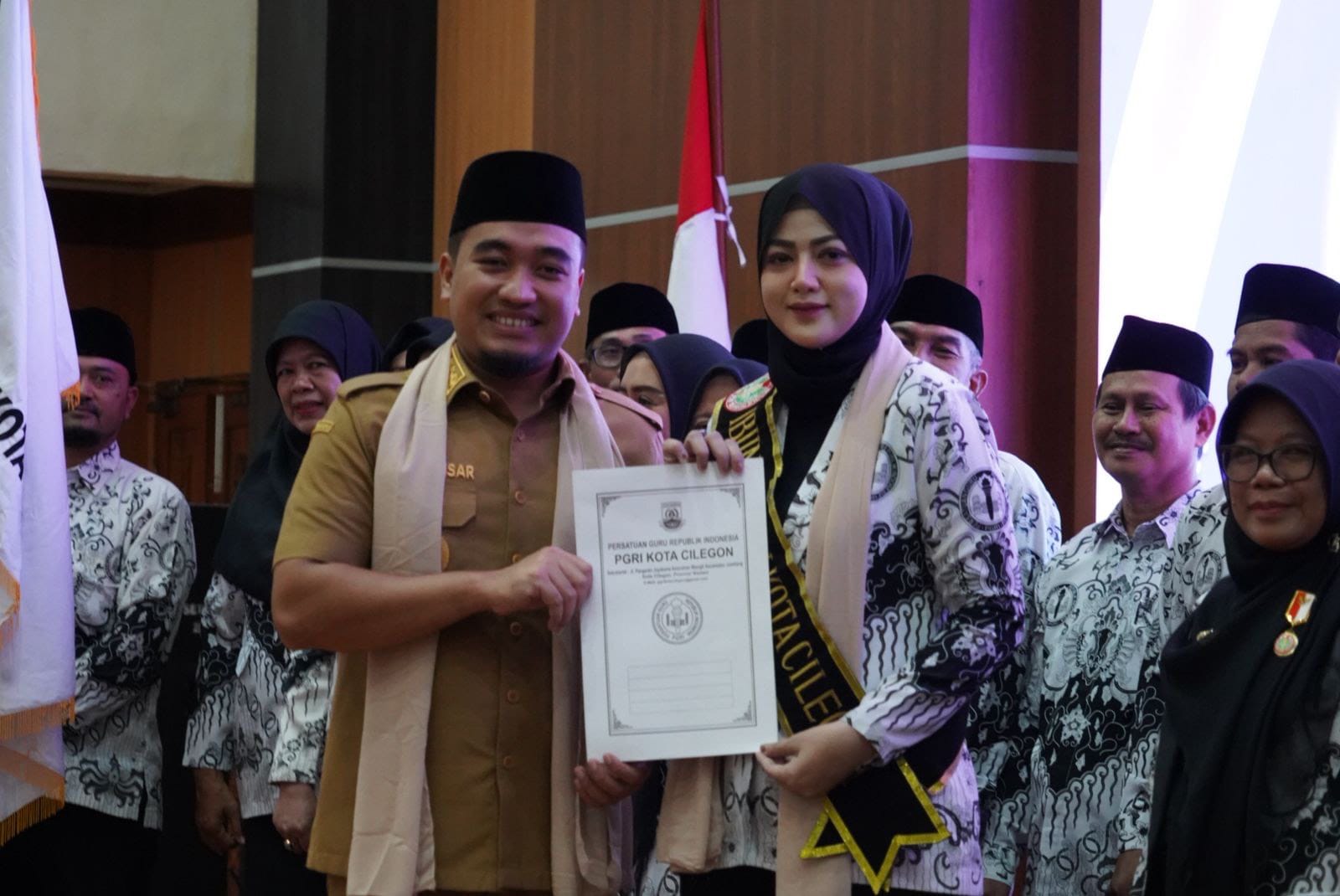 CILEGON, (suarasiber.co.id) – Wali Kota Cilegon, Robinsar, hadiri dan kukuhkan Pengurus Persatuan Guru Republik Indonesia (PGRI) Kota Cilegon dan Alfi Rizky Aghnia Robinsar sebagai Ibunda Guru PGRI Kota Cilegon, yang diselenggarakan pada Aula DPRD Kota Cilegon, Senin, 22 Desember 2025.