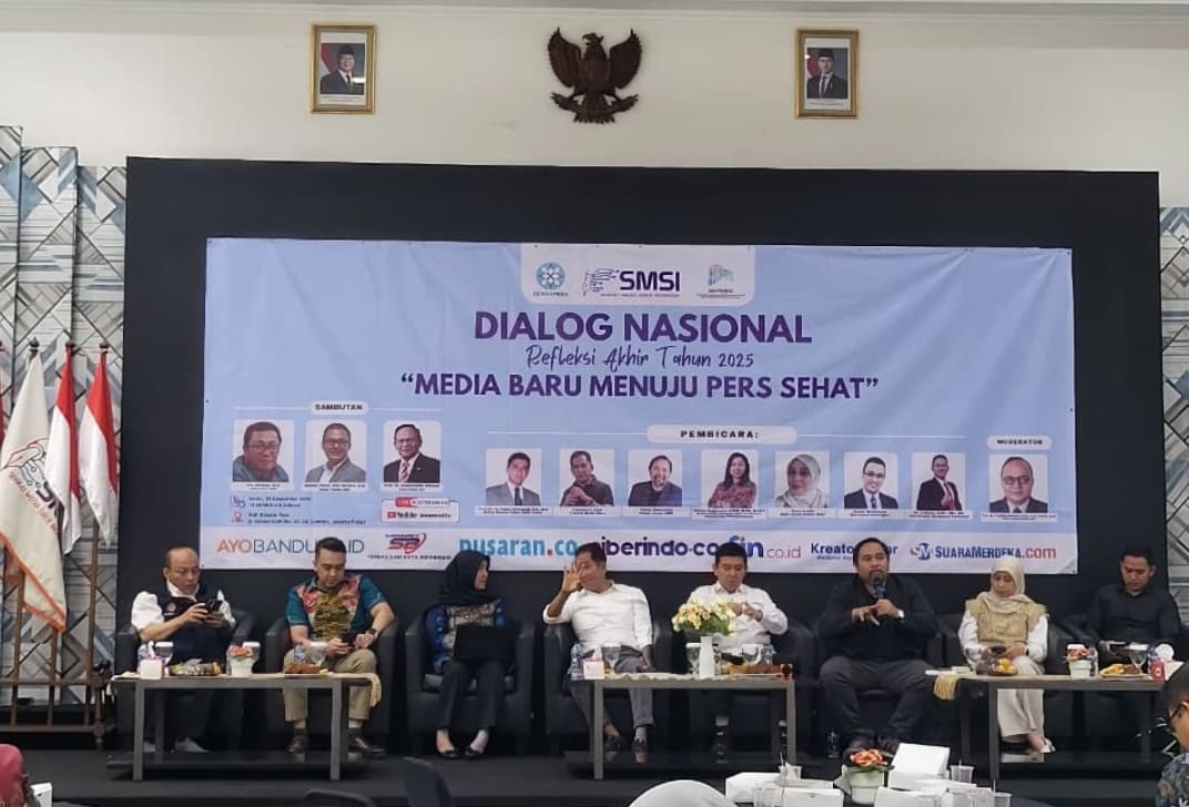 JAKARTA, (suarasiber.co.id) – Dialog Nasional Refleksi Akhir Tahun 2025 dengan tema “Media Baru Menuju Pers Sehat” sukses diselenggarakan oleh Serikat Media Siber Indonesia (SMSI). Acara strategis yang bertujuan membahas masa depan pers digital ini dilaksanakan di Hall Dewan Pers, Jalan Kebon Sirih, Gambir, Jakarta Pusat pada Senin (15/12/25).