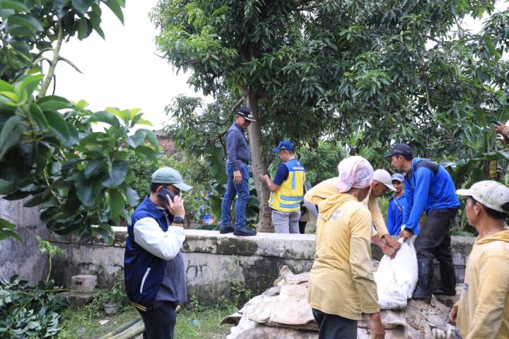 Wali Kota Tangerang H. Sachrudin, turun langsung ke lokasi untuk memantau pemasangan kisdam di titik tembok penahan yang jebol untuk mengantisipasi banjir susulan.