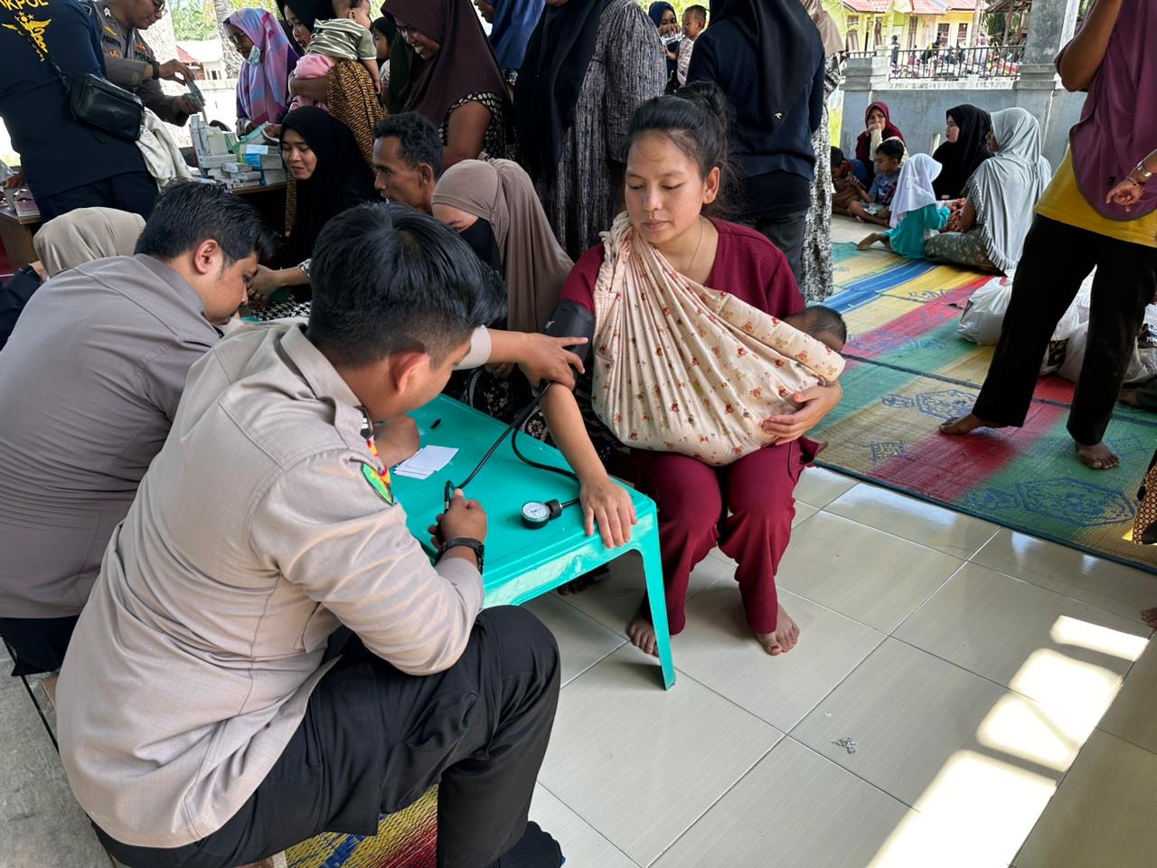 Kehadiran tim kesehatan Polri disambut hangat oleh masyarakat. Sulaiman (52), warga Desa Tanjung Binjai, mengaku sangat terbantu dengan layanan yang diberikan.