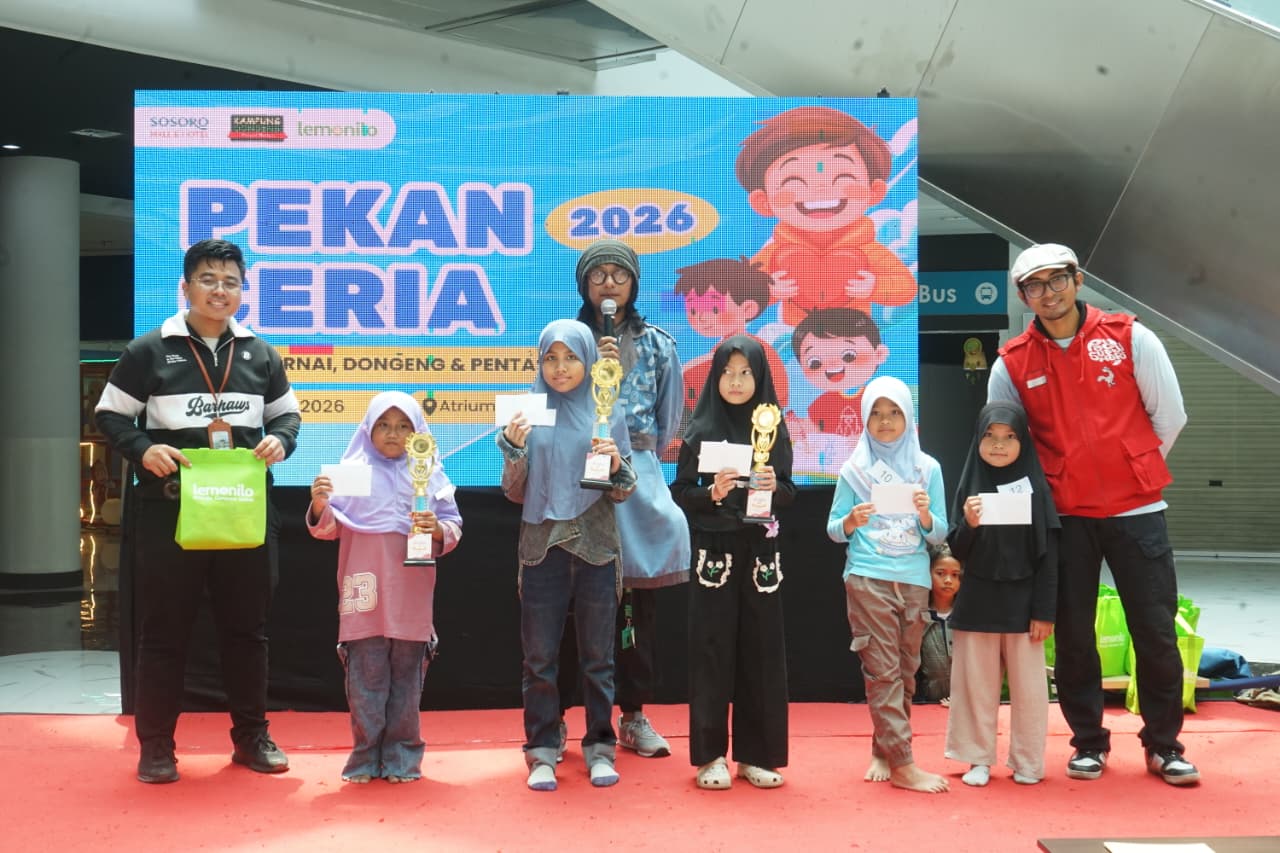 CILEGON, (suarasiber.co.id) – KIM Kota Cilegon – Kampung Dongeng Cilegon sukses menyelenggarakan kegiatan Pekan Ceria 2026 bekerja sama dengan Sosoro Mall dan Hotel, Minggu, 19 April 2026. Kegiatan ini menjadi ruang ekspresi sekaligus hiburan edukatif bagi anak-anak, dengan menghadirkan lomba mewarnai dan pertunjukan seni.